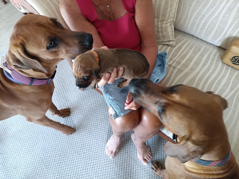 The puppies continue to do well, feeding and gaining weight. Poppy is a stalwart! She is voraciously hungry and thirsty but, always looks after her babies. She loves to lie in the sun and sleep, in between feeds. She is also very territorial around the property, barking loudly at any noises.